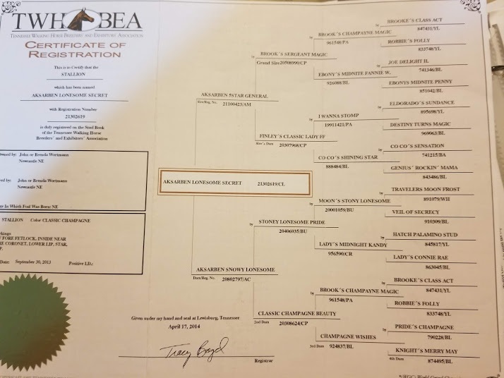 Aksarben 5Star General (Secret sire) is an amber champagne pictured here as a 3 year old.